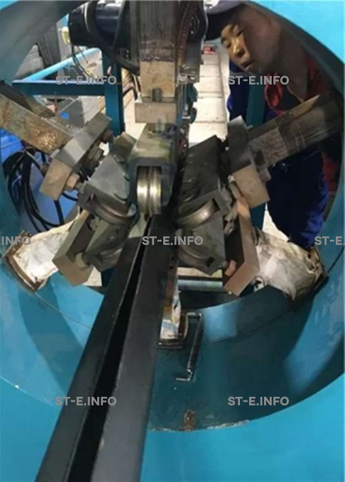 Хомуты на движущемся устройстве тяги зажимают конец изделия, после того, как комплекс приводится в действие, изделие начнет двигаться равномерно от малого конца к большому концу. Сварочный автомат осуществляет автоматическую дуговую сварку под флюсом и формирует прочный аккуратный шов.