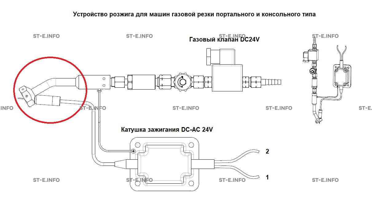 Главная » Сварочное оборудование » Запчасти для консольных и портальных машин термической резки » Аксессуары для плазменной и газовой резки, Оси-Z, подъемники » Запасная часть устройства розжига для машин газовой резки - горелка газовая вспомогательная