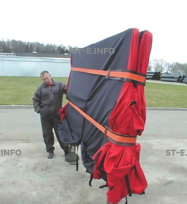Сварочное укрытие состоит из складного разборного каркаса, выполненного из конструкционной или легированной стали (в зависимости от модели). Укрытие «Шатер» легко собирается из упаковки при помощи 2-3 человек в течение 10-15 минут. Затем, в собранном виде, ставится вручную на трубу, веером раскладывается и крепится к трубе двумя стяжными устройствами. (Возможна установка укрытия подъемной техникой). Рукава укрытий затягиваются шнуром в соответствии с диаметром трубы.