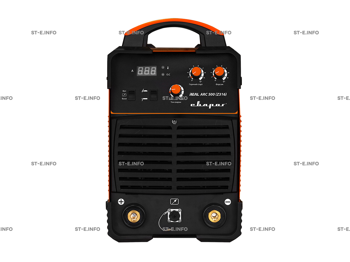 Сварочный аппарат серии REAL ARC 500 (Z316) предназначен для ручной дуговой сварки покрытым электродом (MMA) на прямой и обратной полярности и аргонодуговой сварки неплавящимся электродом (TIG).